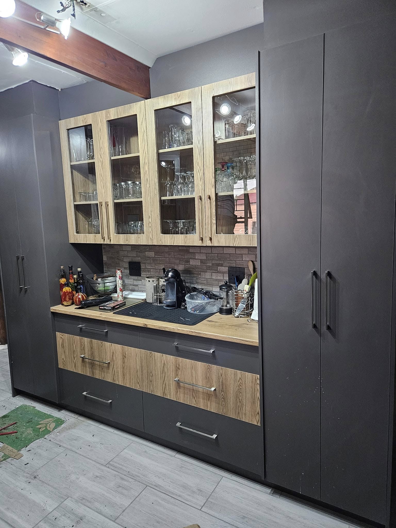 We specialise in more than just kitchen cupboards. Our work includes vanities, bars, built-in cupboards, customised storage solutions, countertops, and more — all designed and manufactured to suit your space perfectly.